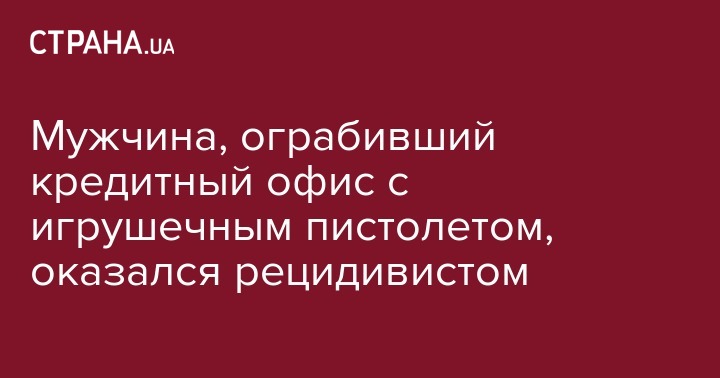 Мужчина, ограбивший кредитный офис с игрушечным пистолетом, оказался рецидивистом