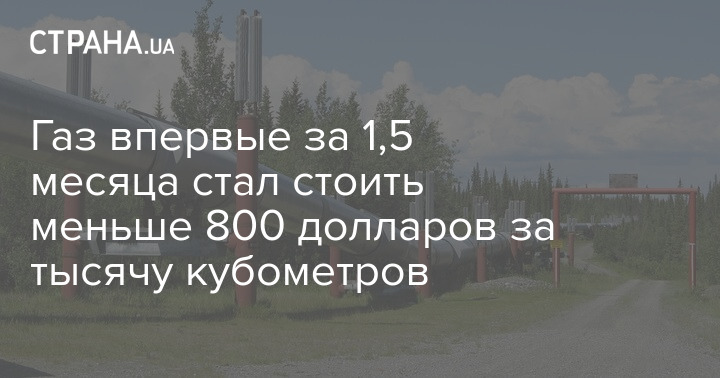 Газ впервые за 1,5 месяца стал стоить меньше 800 долларов за тысячу кубометров