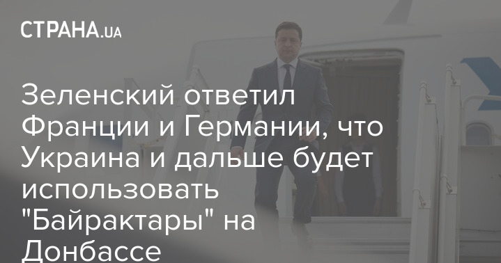 Президент Владимир Зеленский прокомментировал негативную реакцию Франции и Германии на применение на Донбассе Вооруженными силами Украины турецкого беспилотника "Байрактар". По словам Зеленского, ВСУ используют свое вооружение только для защиты суверенитета и территориальной целостности государства и только в ответ на нарушение режима тишины со стороны противника.