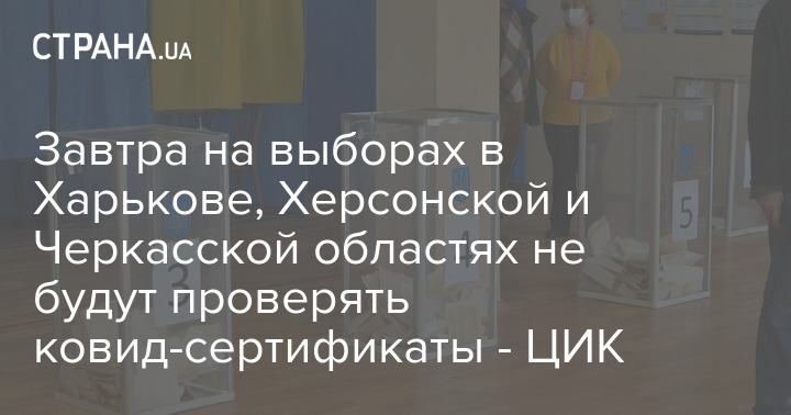 В воскресенье, 31 октября, у желающих принять участие в голосовании на выборах мэра Харькова и довыборах в Раду в Херсонской и Черкасской областях на избирательных участках не будут требовать COVID-cертификат или отрицательный ПЦР-тест.