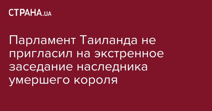 Национальная законодательная ассамблея (парламент) Таиланда провела чрезвычайное собрание без наследного принца, официального претендента на престо страны. Отметим, что его присутствие на таком собрании предполагает законодательство Таиланда. Парламентарии собрались в четверг, 13 октября после получения известия о смерти короля, сообщает ТАСС.