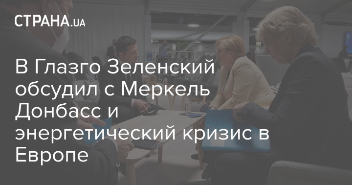 "Во время встречи в Глазго с Ангелой Меркель обсудили текущую ситуацию с безопасностью на Донбассе и ход переговоров для установления мира, энергетический кризис в Европе и пути его преодоления, а также актуальные вопросы отношений Украины и Германии", - написал Зеленский.
