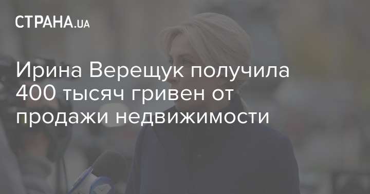 Ирина Верещук получила 400 тысяч гривен от продажи недвижимости