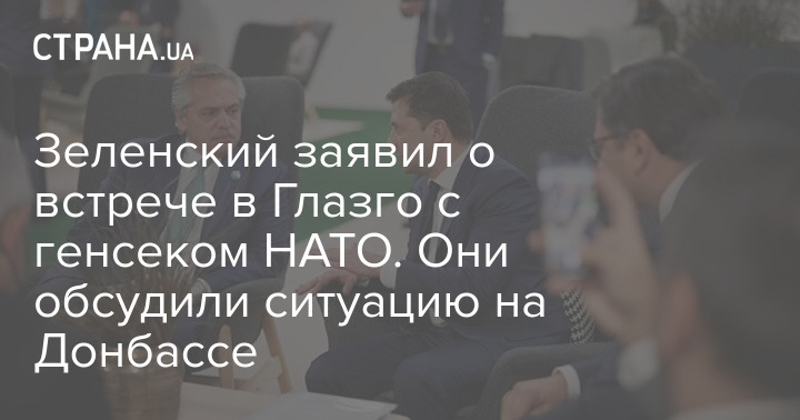Президент Украины Владимир Зеленский, который находится в шотландском городе Глазго на Конференции ООН по изменению климата COP26, пообщался с генеральным секретарем Североатлантического Альянса (НАТО) Йенсом Столтенбергом. Стороны обсудили ситуацию на Донбассе.
