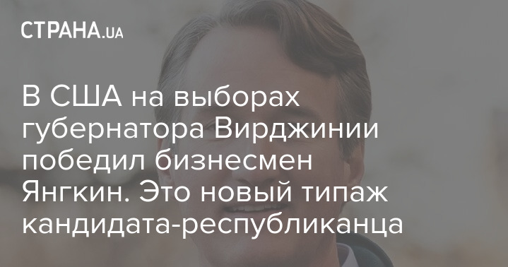 В США на выборах губернатора Вирджинии победил бизнесмен Янгкин. Это новый типаж кандидата-республиканца