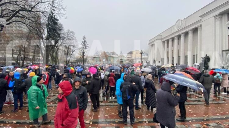 Противники вакцинации уже начали обещанное вече под зданием парламента. Фото: "Страна"