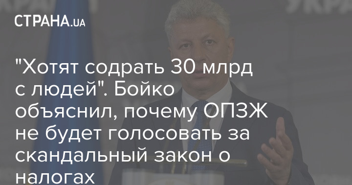 "Хотят содрать 30 млрд с людей". Бойко объяснил, почему ОПЗЖ не будет голосовать за скандальный закон о налогах