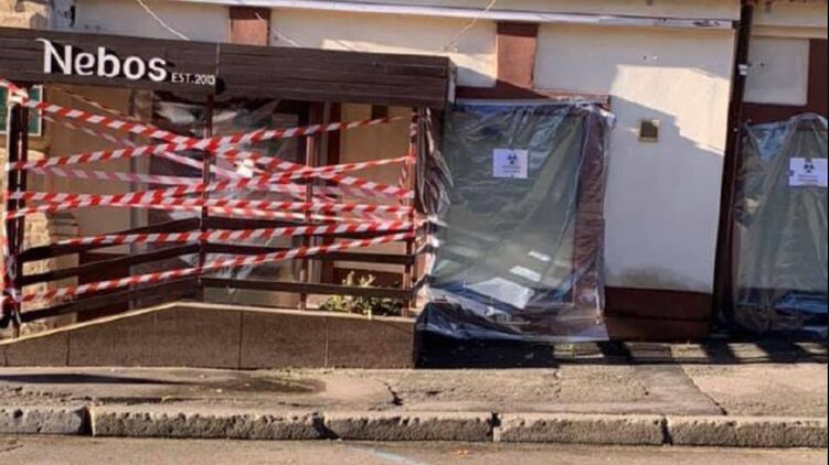 Сегодня утром, 6 ноября, неизвестные обклеили пленкой и предупреждающими лентами киевское кафе Nebos, которое саботирует правила карантина. Также на входе в кафе кто-то разместил надпись "биологическая опасность".