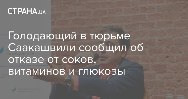 Экс-президент Грузии, председатель исполнительного комитета Национального совета реформ Украины Михаил Саакашвили, который 37-й день голодает в грузинской тюрьме с целью доказать свою невиновность, заявил об отказе от сока, витаминов, минералов и глюкозы.