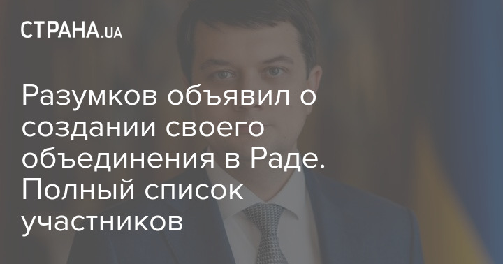Экс-председатель Верховной Рады народный депутат от "Слуги народа" Дмитрий Разумков создает межфракционное депутатское объединение "Разумная политика". Обращение о создании уже передано на рассмотрение в парламент. Разумков опубликовал список вошедших в это объединение депутатов.