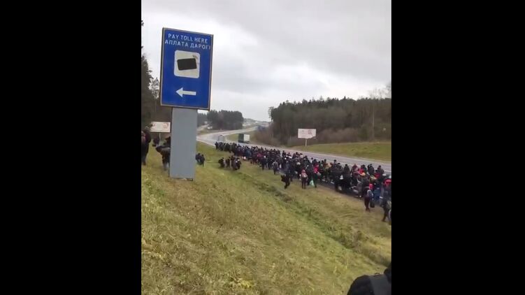 В Беларуси огромная колонна мигрантов движется к границе с Евросоюзом. Видео