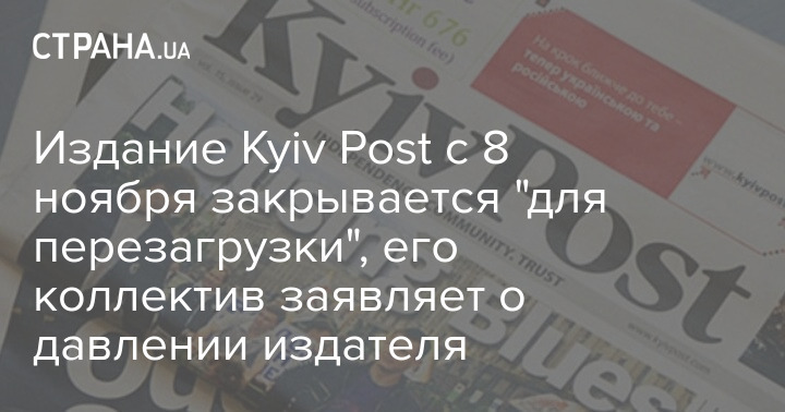 Издание Kyiv Post с 8 ноября закрывается "для перезагрузки", его коллектив заявляет о давлении издателя