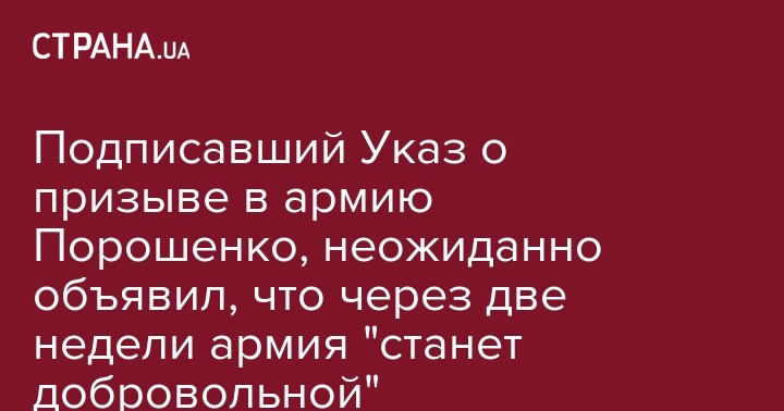 Подписавший Указ о призыве в армию Порошенко, неожиданно объявил, что через две недели армия "станет добровольной"