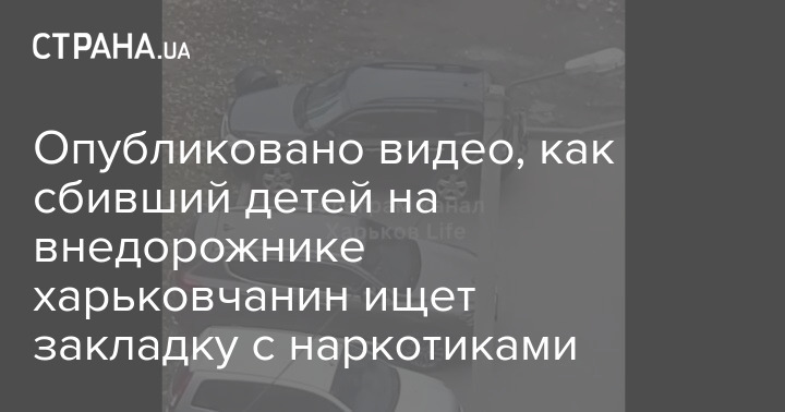 Появилось видео, как водитель джипа, который сбил сегодня детей на переходе, ищет закладку наркотиков.