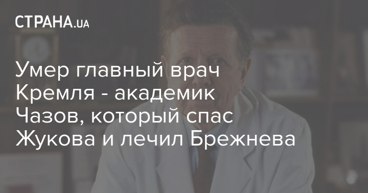 Умер главный врач Кремля - академик Чазов, который спас Жукова и лечил Брежнева