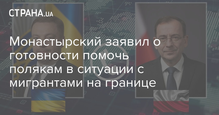 Министр внутренних дел (МВД) Украины Денис Монастырский провел телефонный разговор со своим польским коллегой Мариушем Каминским, с целью обсудить ситуацию с миграционного кризиса на белорусской границе. Монастырский заверил, что Украина готова оказать помощь Польше.