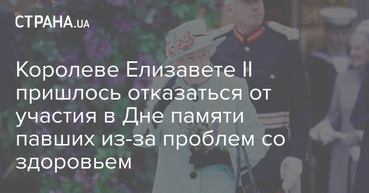 Королева Великобритании Елизавета II не будет присутствовать на торжественной церемонии по случаю Дня поминовения. Она получила растяжение спины.
