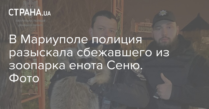 Енота Сеню нашли и доставили невредимым в зоопарк. Фото: Патрульная Полиция Донецкой области