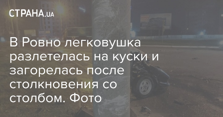 В Ровно легковушка разлетелась на куски и загорелась после столкновения со столбом. Фото