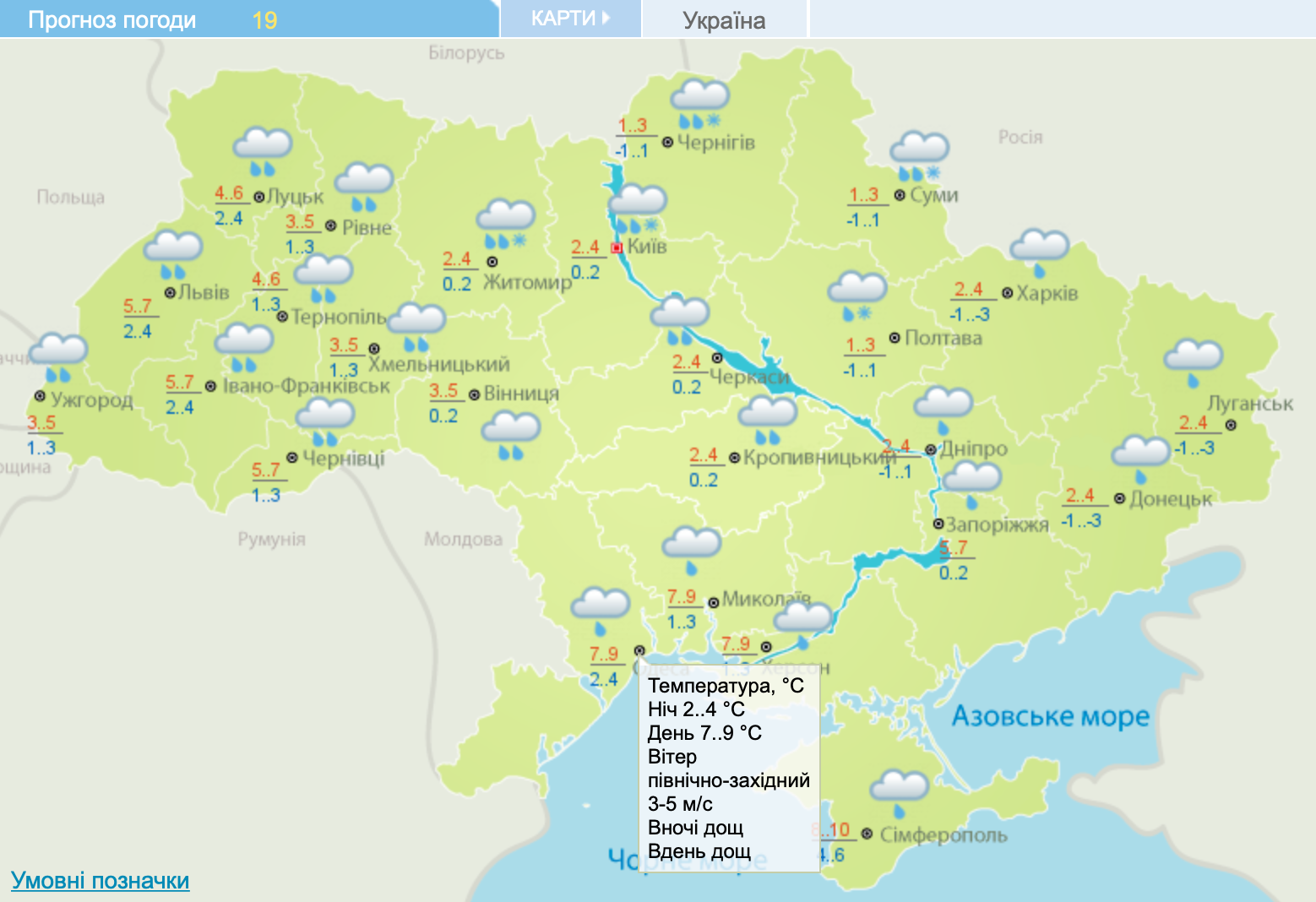 Синоптики Укргидрометцентра также прогнозируют дождь со снегом 19 ноября 2021 года. Ожидается, что вместе со снегом будет дождь. Такая погода будет еще в Житомирской, Киевской, Сумской, Черниговской и Полтавской областях.