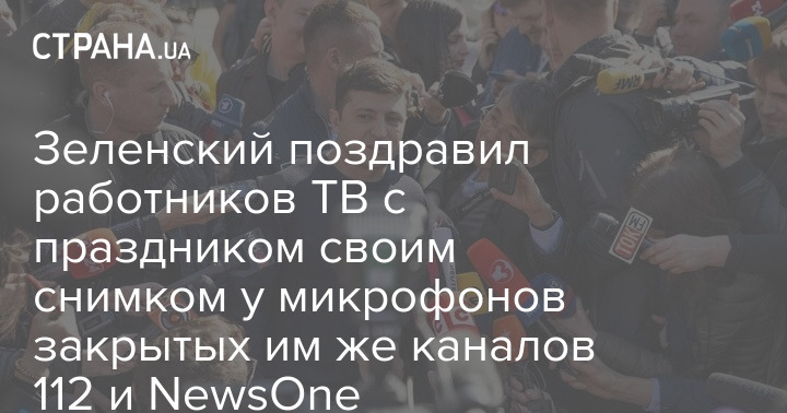 Зеленский поздравил работников ТВ с праздником своим снимком у микрофонов закрытых им же каналов 112 и NewsOne