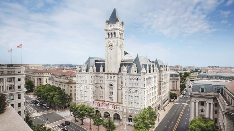 Гостиница расположена в историческом здании в нескольких минутах ходьбы от Белого дома. Здание построено в конце ХІХ века и занесено в Национальный реестр исторических мест. Некогда в нем размещалось главное почтовое отделение столицы. Оно принадлежит правительству США, которое в 2013 году сдало его в аренду компании Трампа по недвижимости на 60 лет с возможностью продления еще на 40 лет.