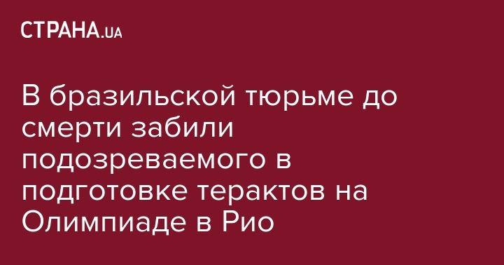 В бразильской тюрьме до смерте был избит Валдира Перейру де Роша. Он подозревался в подготовке теракта на Олимпийских играх в Рио-де-Жанейро и был помещен под стражу до окончания раследования. Об этом сообщает Globo.