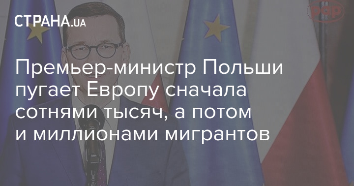 Премьер-министр Польши Матеуш Моравецкий заявил, что если сейчас не удастся сдержать "тысячи" мигрантов, то в скором времени в Европу устремятся уже "сотни тысяч" и "миллионы".