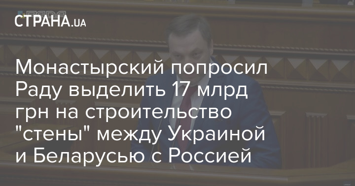 Министр внутренних дел Украины Денис Монастырский во время выступления в Верховной Раде 19 ноября заявил, что для обустройства "стены" на границе с Россией и Беларусью необходимо выделить 17 млрд гривен.