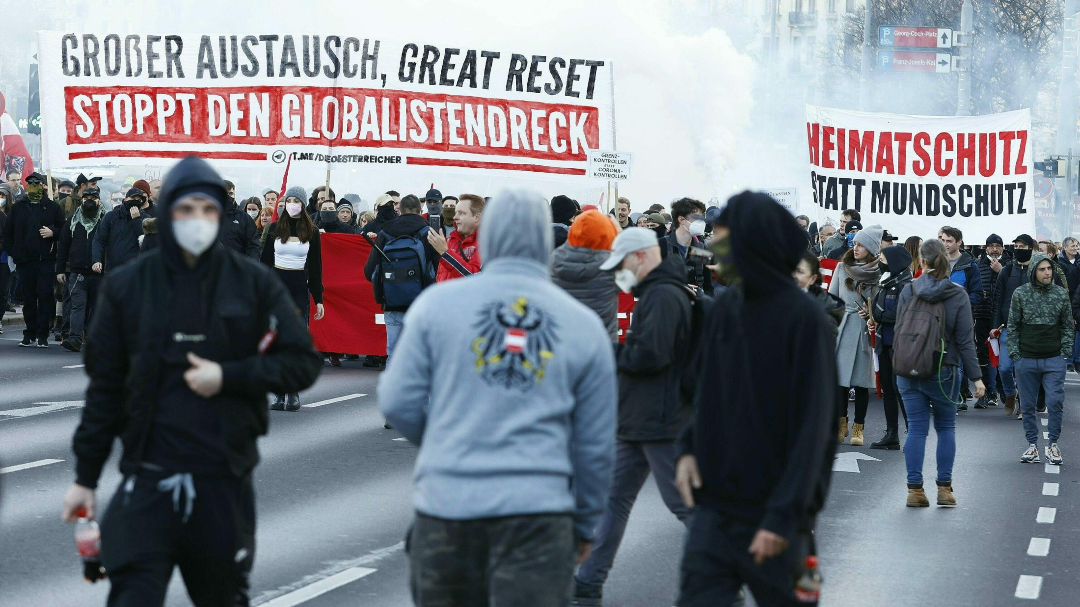 В субботу 20 ноября, как пишет австрийское издание Krone, десятки тысячи человек вышли в центре Вены сразу на несколько демонстраций. Это пожалуй были самые массовые акции в стране за все время пандемии.