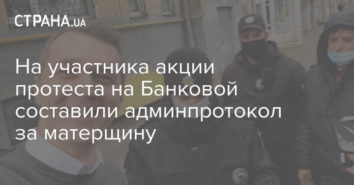 На участника вчерашней акции протеста под Офисом президента, представителя движения "Демсокира" Юрия Гудыменко составили административный протокол за нецензурные выражения, которые он употреблял на Банковой.