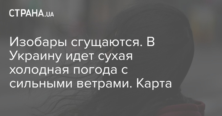 Изобары сгущаются. В Украину идет сухая холодная погода с сильными ветрами. Карта