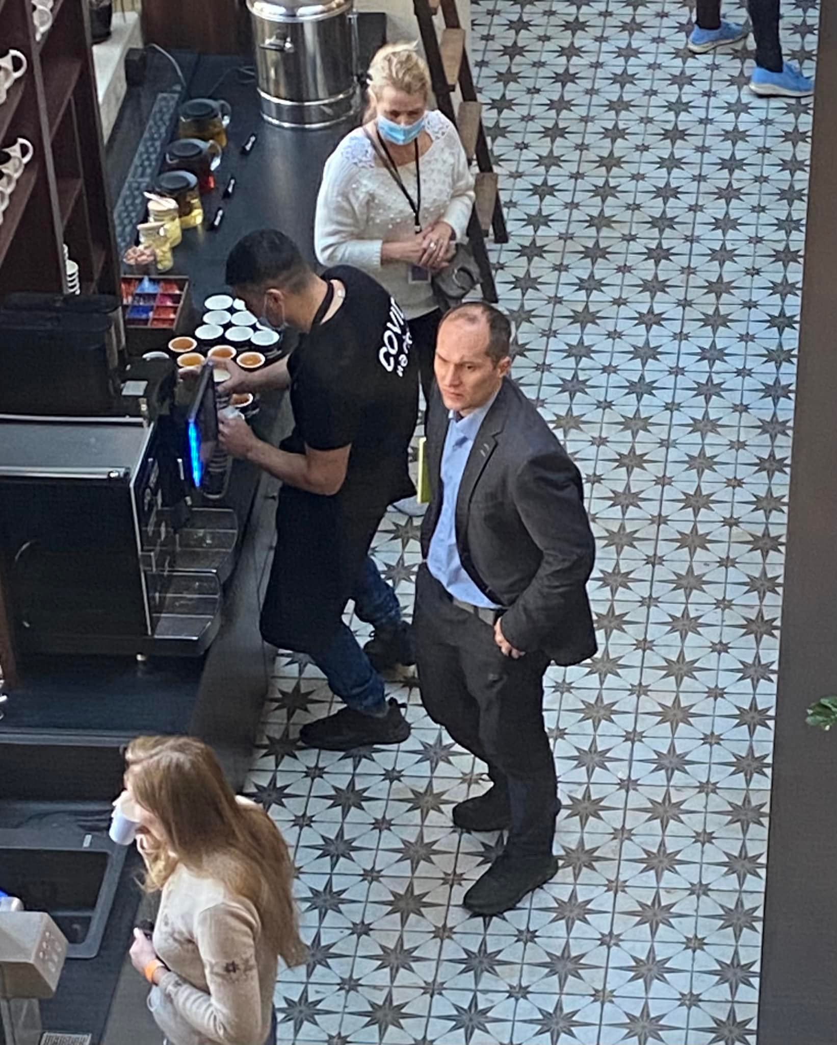 По состоянию на 10:00 в коворкинге находились около 20-30 человек, преимущественно сотрудники безопасности президента.