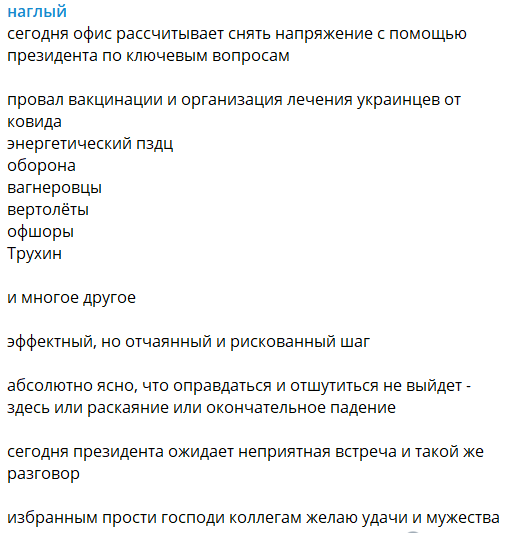 Сегодня президента ожидает неприятная встреча и такой же разговор. Избранным прости господи коллегам желаю удачи и мужества", - пишет телеведущий Макс Назаров.