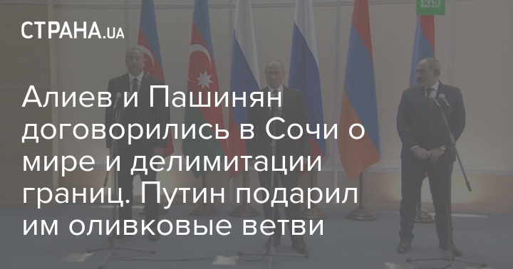 Алиев и Пашинян договорились в Сочи о мире и делимитации границ. Путин подарил им оливковые ветви