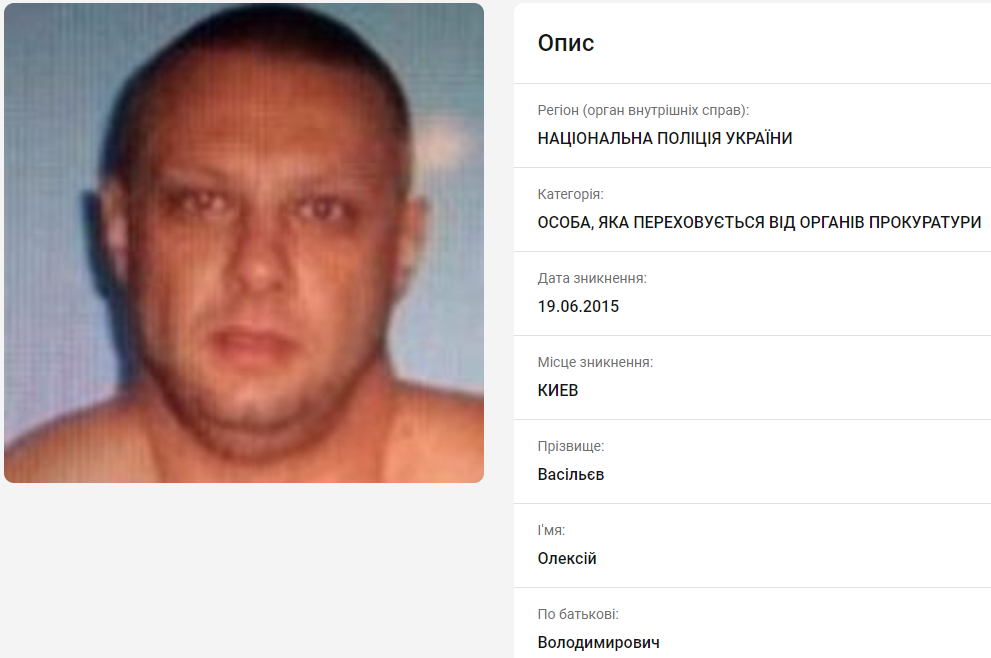 Человек по имени Алексей Васильев находится во всеукраинском розыске с 2015 года. Он подозревается в незаконном обороте оружия. Его профиль висит на "Миротворце", поэтому это, судя по всему, не обычный криминал, и может быть связан с событиями 2014 года.