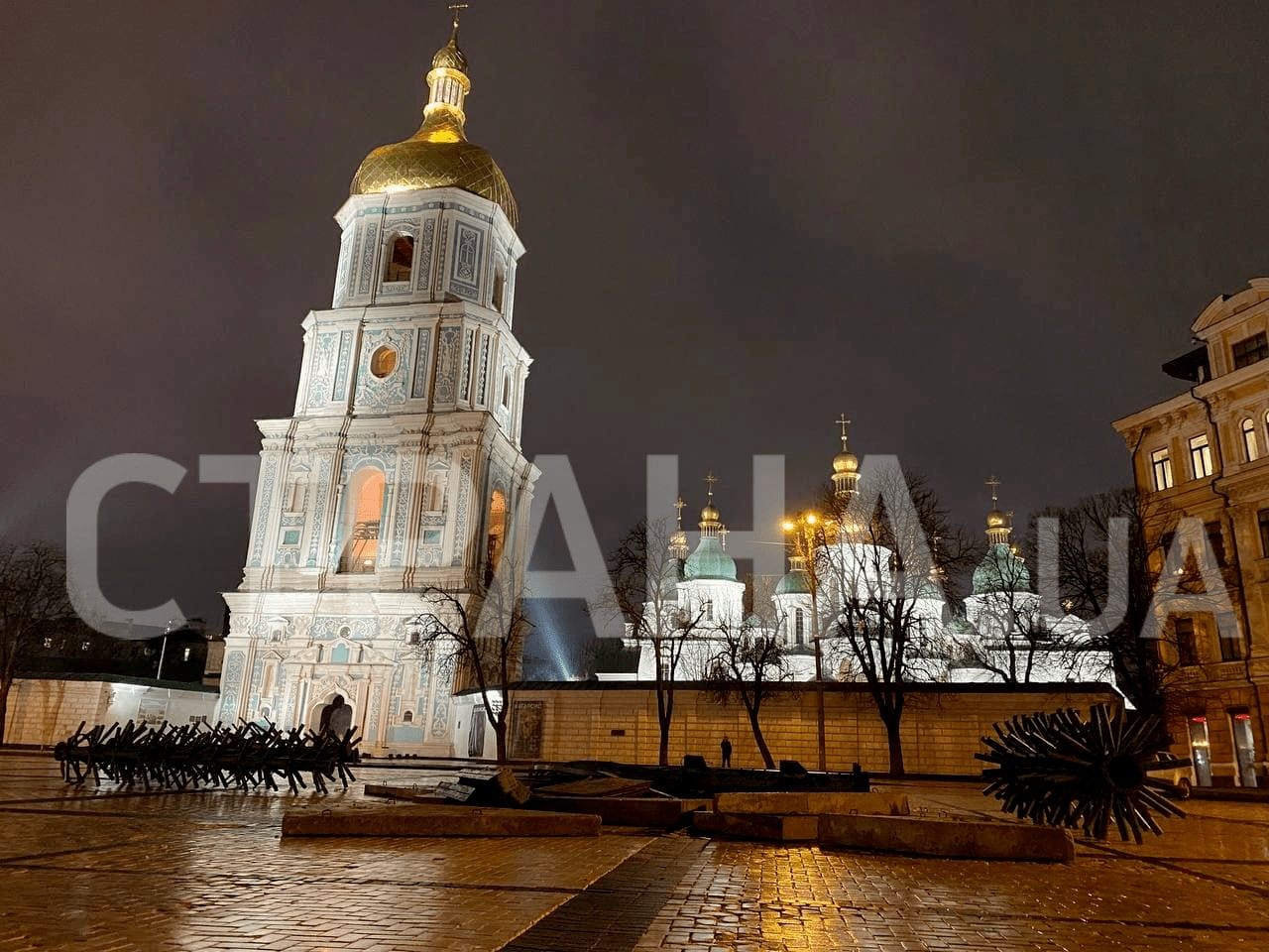 В Киеве начали монтировать новогоднюю елку на Софийской площади за 25 миллионов. Туда уже привезли металлические и бетонные конструкции каркаса.