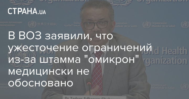 Генеральный директор Всемирной организации здравоохранения Тедрос Адханом Гебрейесус заявил, что введение ограничений из-за нового штамма коронавируса "омикрон" не основано на фактических данных. В ВОЗ призвали страны к рациональным мерам против нового варианта.
