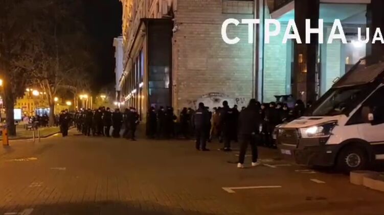 Кроме того, правоохранители охраняют здание Офиса президента - на Банковой построено ограждение и стоит шеренга бойцов.