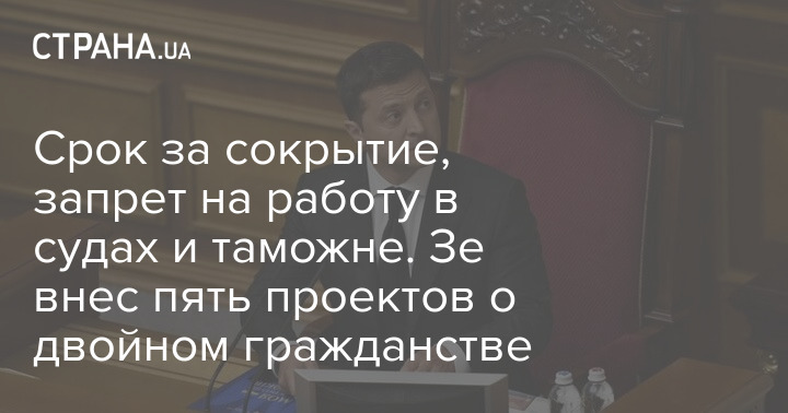 Сегодня президент Украины Владимир Зеленский подал в Верховную раду пять законопроектов о двойном гражданстве. Глава государства планирует обязать депутатов указывать двойное гражданство в декларациях, а к работе в судах и на таможне не допускать граждан других государств, а также установить уголовную ответственность за умышленное сокрытие подданства иностранного государства.