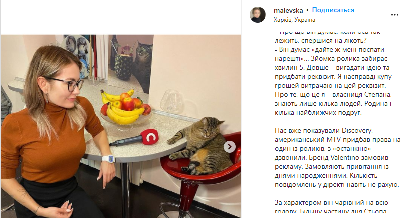 Итальянский модный дом Valentino решил купить рекламу у 13-летнего харьковского кота из Харькова по имени Степан. Это случилось после того, как популярная певица Бритни Спирс выложила снимок животного с бокалом вина у себя в Instagram.