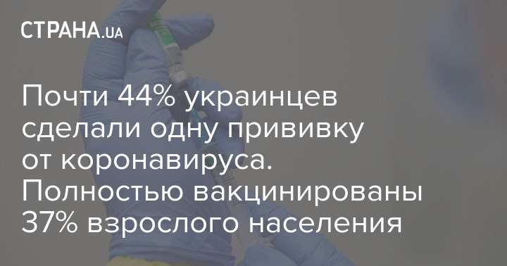 Почти 44% украинцев сделали одну прививку от коронавируса. Полностью вакцинированы 37% взрослого населения