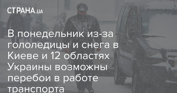 В понедельник из-за гололедицы и снега в Киеве и 12 областях Украины возможны перебои в работе транспорта