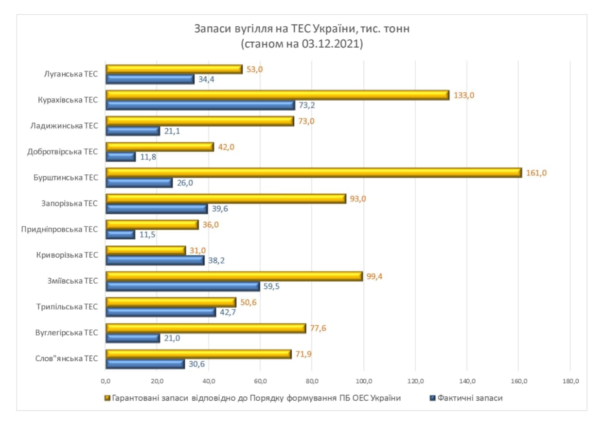 В общей сложности на трех тепловых электростанциях государственной компании находится 123,2 тыс. тонн. При этом минимально допустимым уровнем является227,6 тысяч тонн.