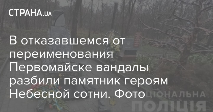 В отказавшемся от переименования Первомайске вандалы разбили памятник героям Небесной сотни. Фото