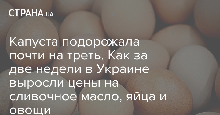 За последние две недели в Украине подешевела гречка и мандарины, но выросли цены на сливочное масло, яйца и овощи. Больше всего подорожала белокочанная капуста (на 30%).