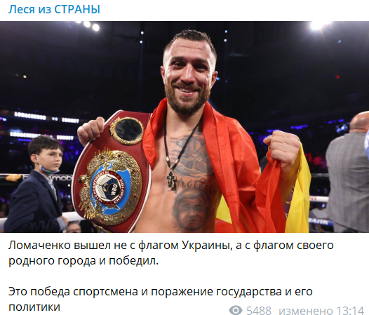 "Ломаченко вышел не с флагом Украины, а с флагом своего родного города и победил.