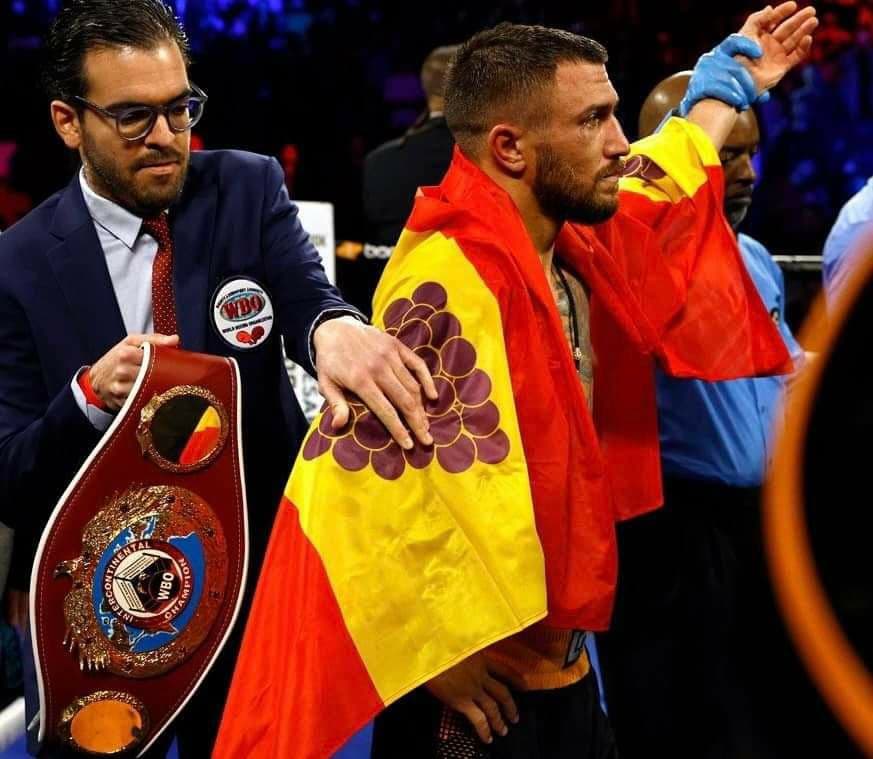 Дважды олимпийский чемпион Ломаченко вышел на ринг, обернутый не в украинский флаг, а в знамя Белгорода-Днестровского - его родного города.