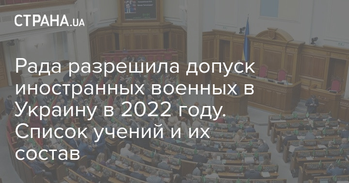 Верховная Рада Украины разрешила допуск иностранных военных в Украину для участия в учениях в 2022 году. За соответствующее решение проголосовали 318 нардепов.