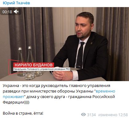 "Украина - это когда руководитель главного управления разведки при министерстве обороны Украины "временно проживает" дома у своего друга - гражданина Российской Федерации.